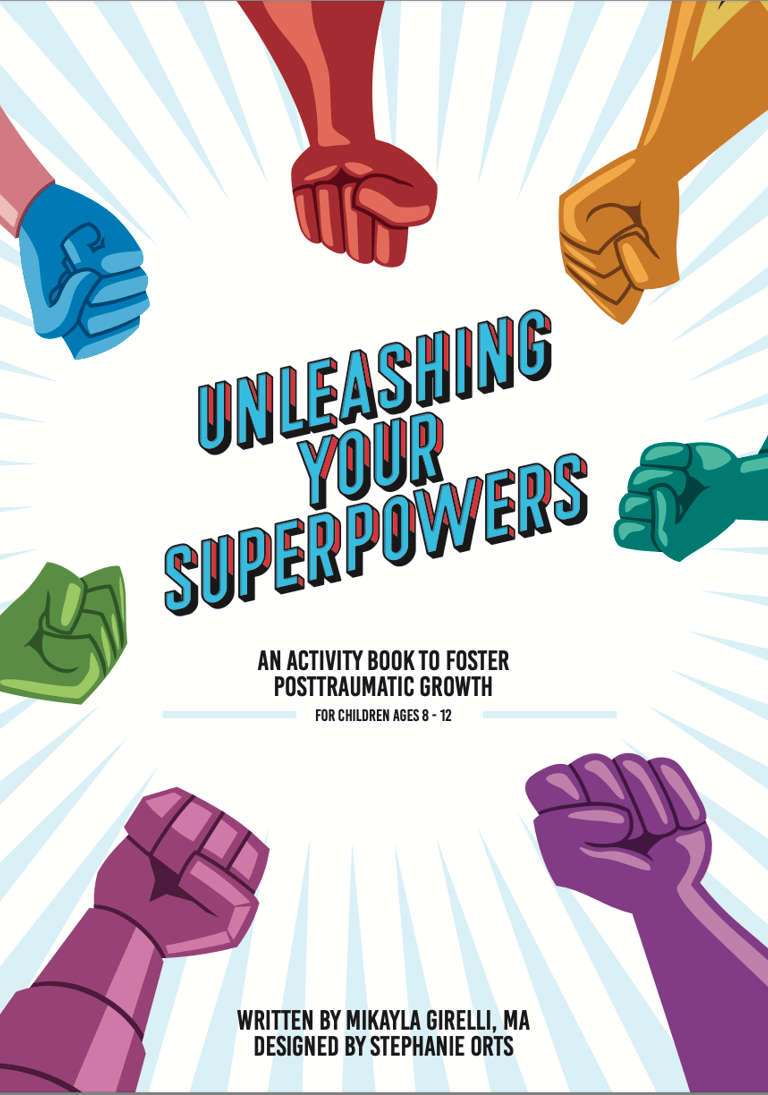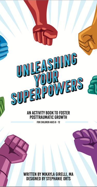 As part of my doctoral research, I created Unleashing Your Superpowers: An Activity Book to Foster Posttraumatic Growth, a children’s activity book designed to help kids ages 8–12 build the skills that support healing and growth after difficult or stressful experiences. Drawing on evidence-based components of posttraumatic growth, the book guides children—alongside a supportive caregiver—through interactive activities focused on emotional expression and regulation, coping strategies, support-building, relationship strengthening, gratitude, and deliberate reflection. Unlike other resilience- or mindset-focused workbooks, this resource integrates all of the core elements shown to promote posttraumatic growth and is designed to be easily used at home, in therapy, or in classroom settings. Its goal is to help children develop confidence, perspective, and a growth-oriented mindset that can foster both recovery and meaningful personal development, whether they are navigating a traumatic experience or simply building emotional skills for the future.